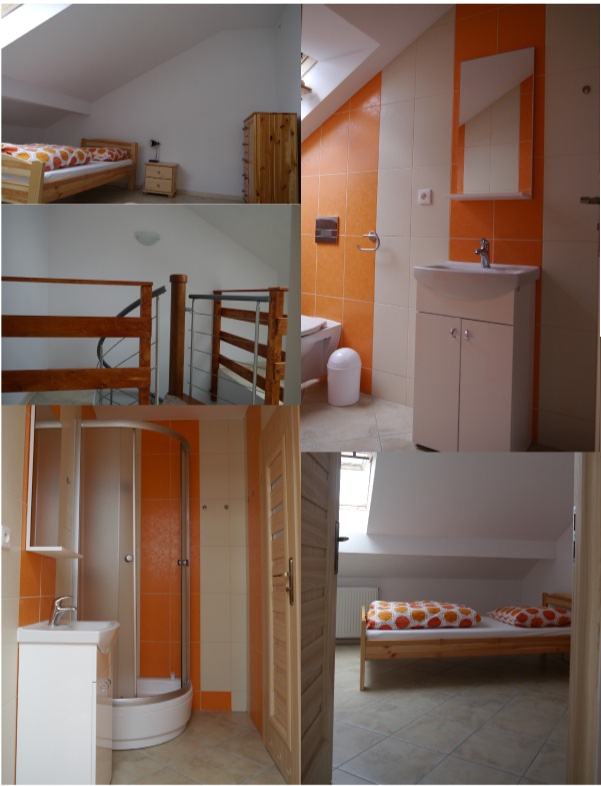 Zweite Etage: Schlafzimmer mit 2 Einzelbetten, Bad mit Dusche.